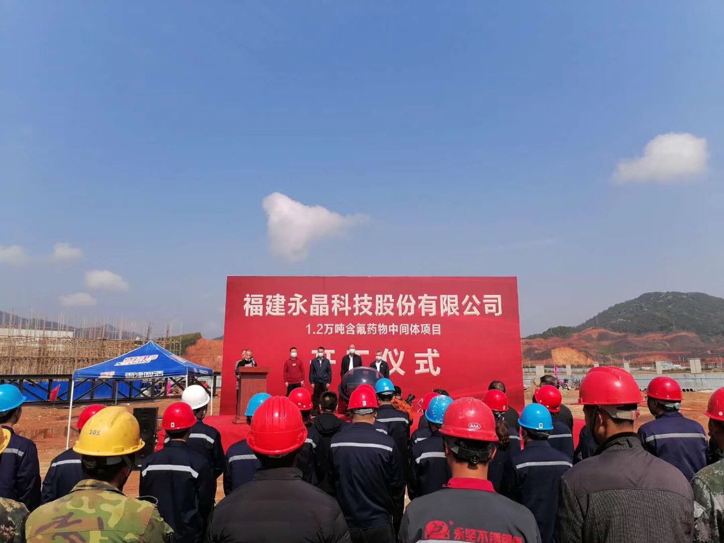 2020年4月24日,福建永晶科技股份有限公司1.2萬(wàn)噸含氟藥物中間體項(xiàng)目開工儀式在金塘工業(yè)園區(qū)舉辦。
